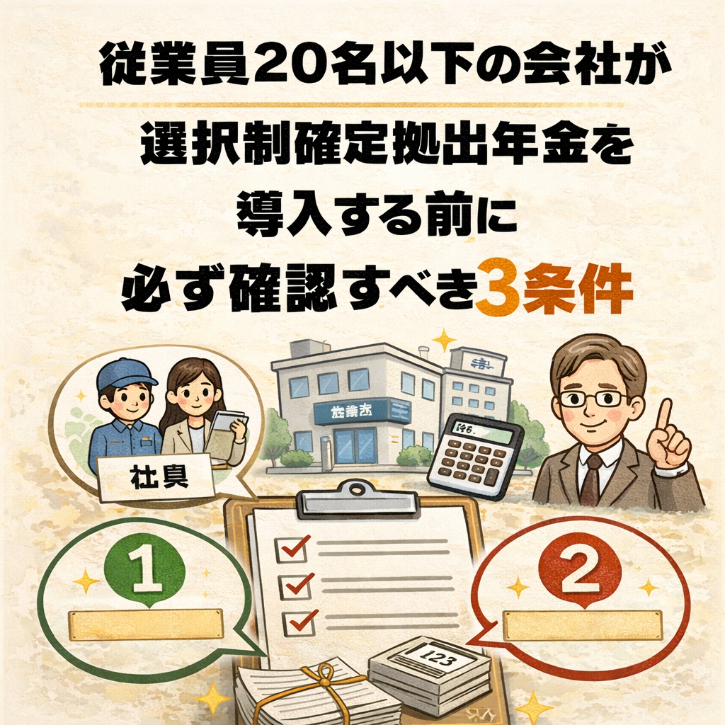 従業員20名以下の会社が 選択制確定拠出年金を導入する前に必ず確認すべき3条件